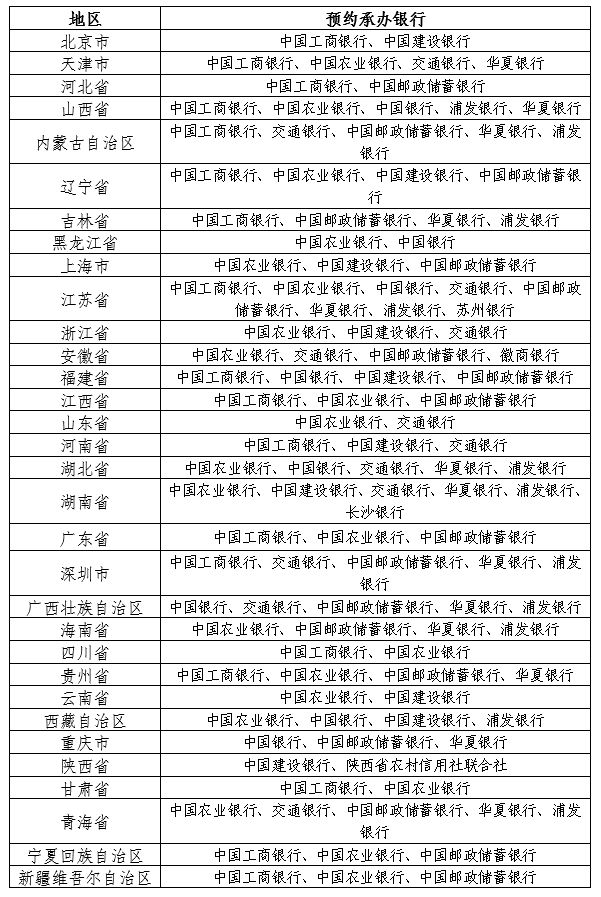 中国工商银行、中国农业银行、中国银行、中国建设银行、交通银行、中国邮政储蓄银行、华夏银行、浦发银行、苏州银行、徽商银行、长沙银行、陕西省农村信用社联合社(以下统称预约承办银行)共同承担中国京剧艺术普通纪念币的预约兑换工作。各地区具体安排如下: